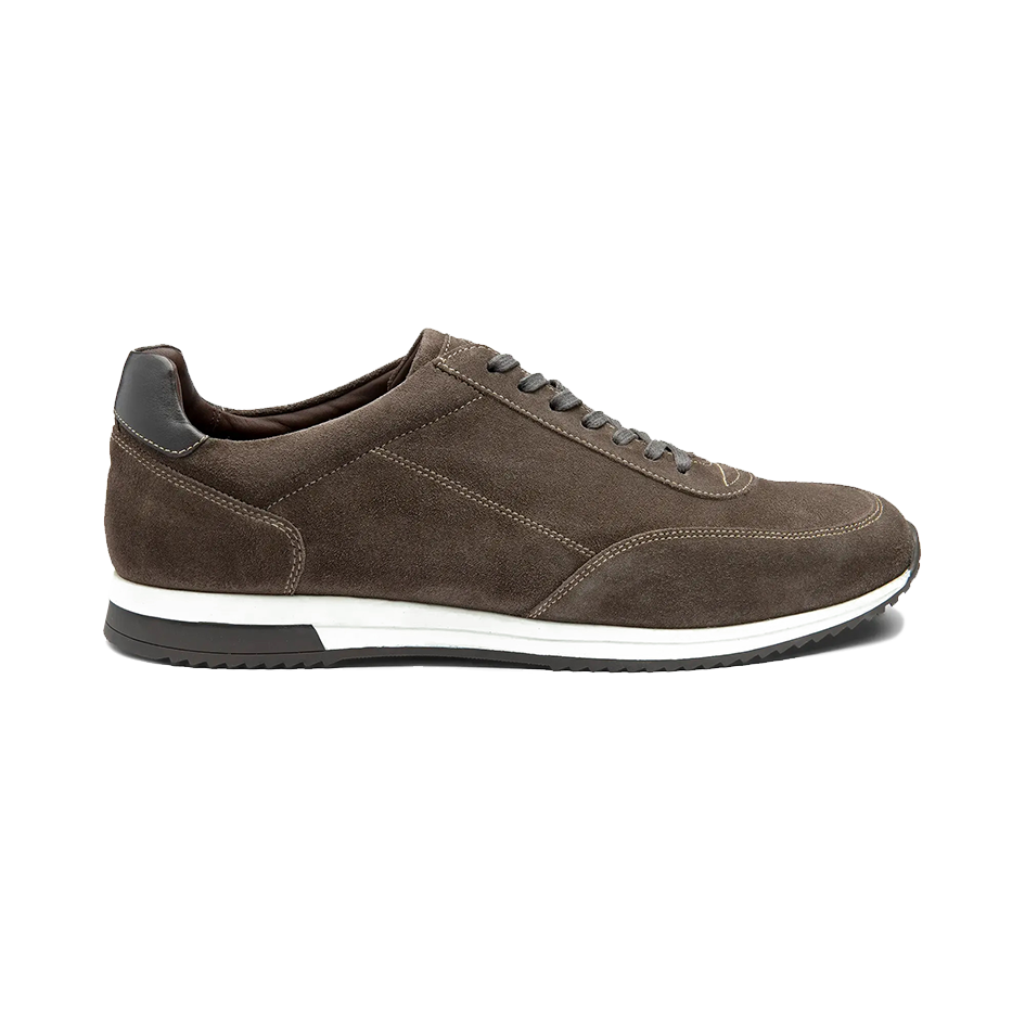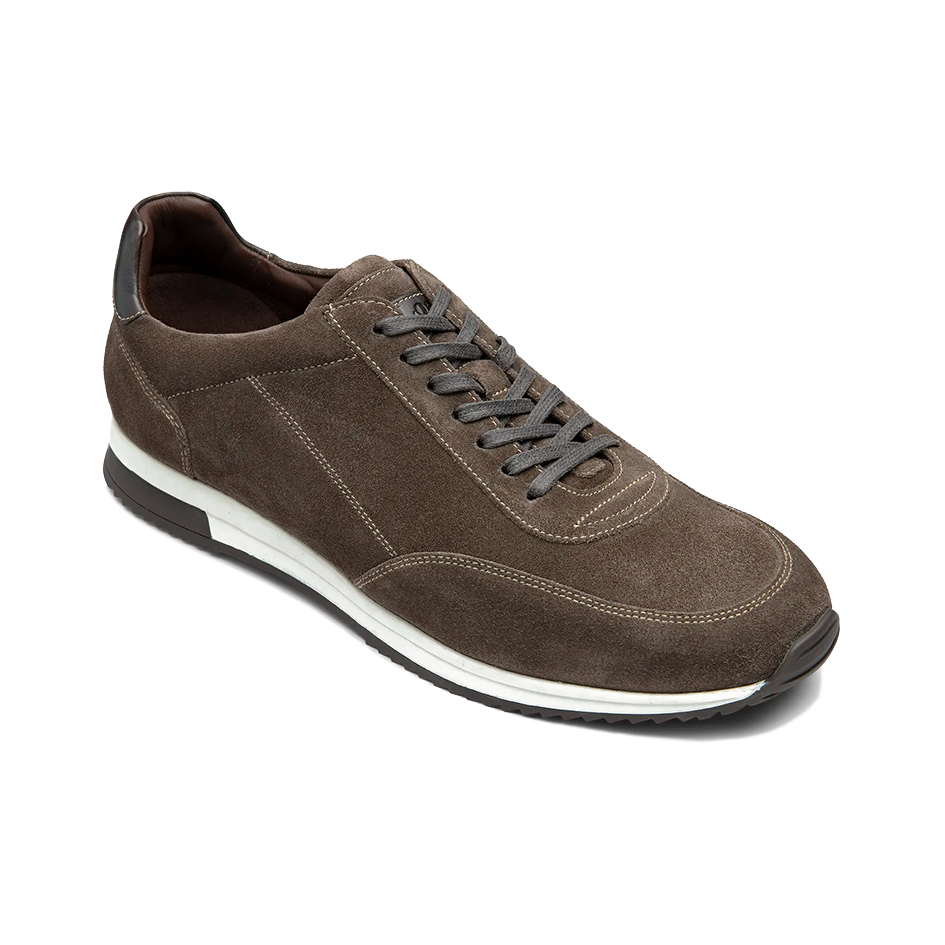 Loake’s ‘Bannister’ is a premium Suede trainer, featuring cemented rubber soles for greater longevity and grip. Bannister uses the ‘trainer’ last shape, and is available in a ‘f’ fitting. These men’s shoes are designed and engineered in Kettering, Northamptonshire and handmade in their high-grade factory in India.