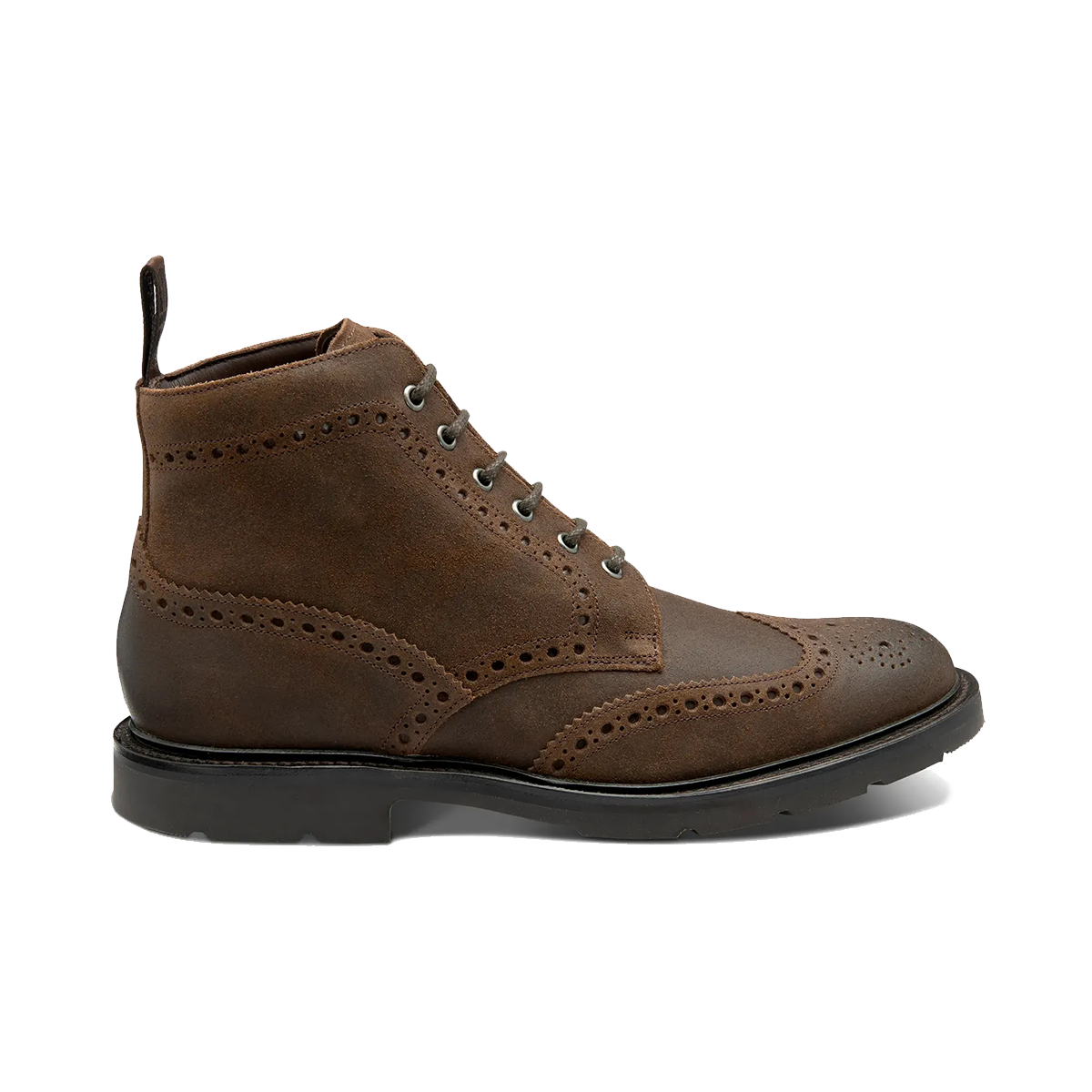 Loake’s Bude is a premium brown rough-out suede boot, designed with Goodyear welted rubber soles to provide outstanding grip, durability, and the option of resoling for extended wear. Built on the Castle last, it offers a comfortable F fitting with a classic boot silhouette, ideal for smart-casual to rugged everyday styling. These men’s shoes are designed and engineered in Kettering, Northamptonshire, and handmade in their high-grade factory in England, reflecting Loake’s heritage of fine shoemaking. A versatile boot that blends traditional British craftsmanship with modern practicality and style.